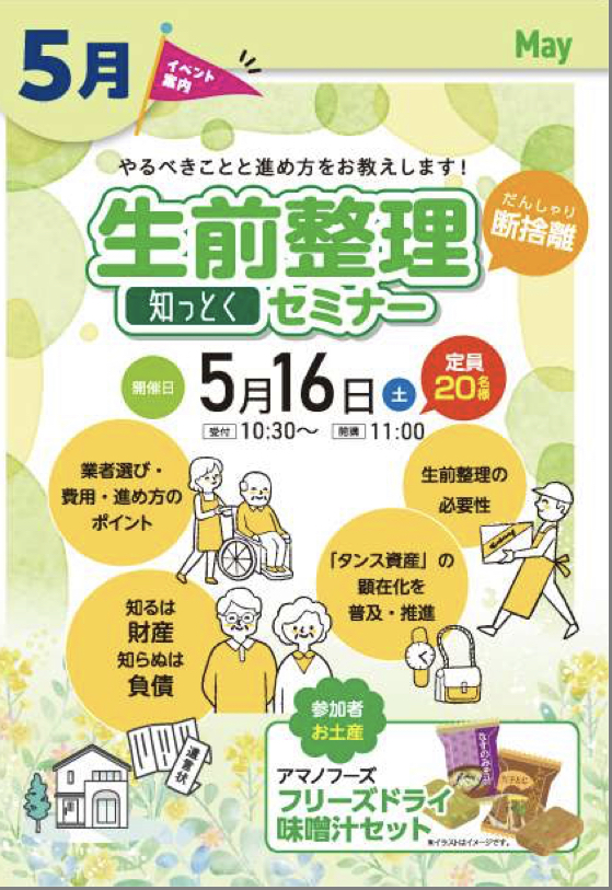【ロイヤルCH野田開催】5月16日(土)お役立ち!断捨離セミナー♫来場者プレゼント付き